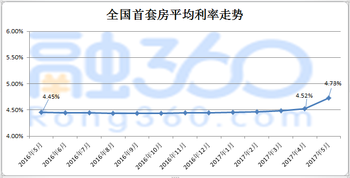据融360大数据研究院提供的数据显示,2017年5月份,全国房贷利率水平明显上升。