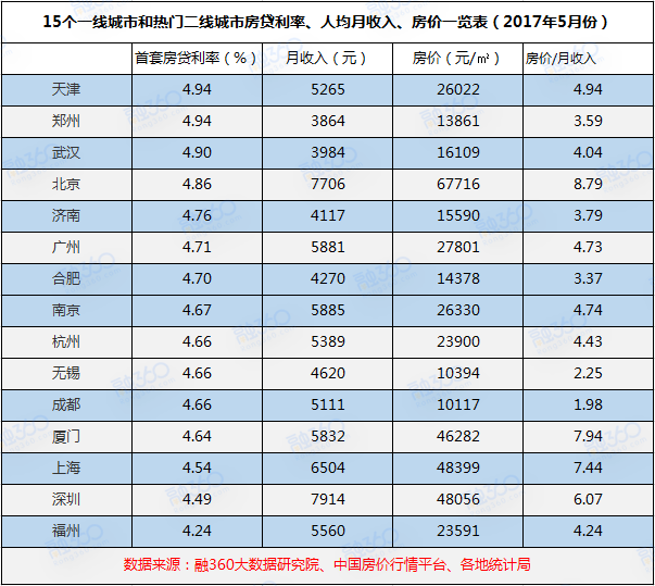 以下是我们从房价、月收入、首套房贷平均利率三个维度统计出的结果: