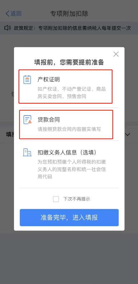 3.选择扣除年度【2022】后出现如下界面,准备好相应材料,进入填报即可。